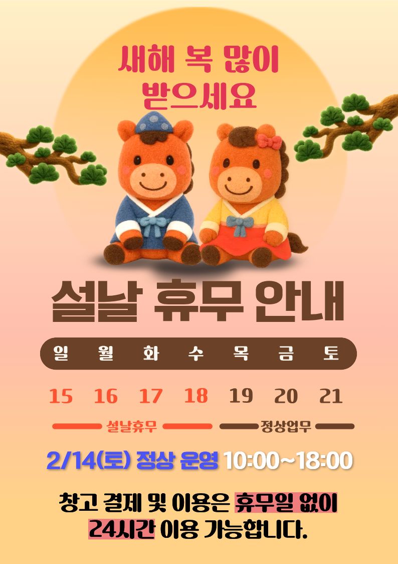 - 2026년 2월 15일(일)~2월 18일(수) 휴무