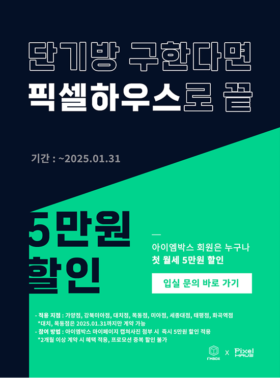 - 이벤트 참여 방법: 아이엠박스 마이페이지 캡쳐사진 첨부 시 즉시 5만원 할인 적용 (*2개월 이상 계약 시 혜택 적용)