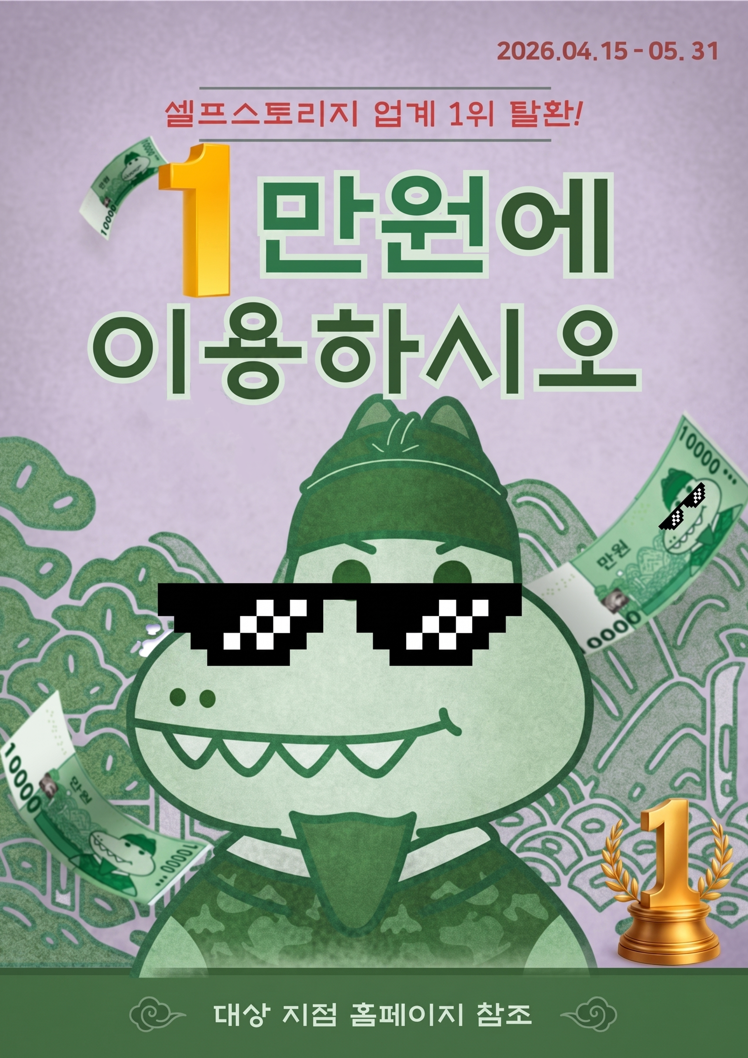 - '대상 지점' 보관함 첫 구매 시, 할인 코드를 넣으면 (가장 작은 사이즈 기준) 첫 달을 만원에 이용할 수 있습니다.