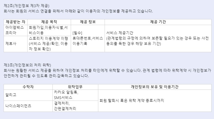 서비스 제공을 위하여 회사와 서비스 제휴계약을 체결한 제3자의